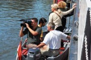 A return to the ships was followed by sampling demonstrations for the journalists, some of which interviewed Zoran Durokovic, Director of Croatia's Water Management Department for the Drava and Danube River Basin. The ICPDR's Philip Weller got into the Drava mud onshore for some discussions with the scientists at work. With the reappearance of the new sampling sieves, many team members busily caught up on their work to isolate the sediment required for chemical analyses from the last few sampling stations. Everyone was also happy to see the bottles unloaded for the ships from a truck of the Coca-Cola Hellenic Bottling Company, a key private supporter of the JDS2.