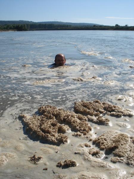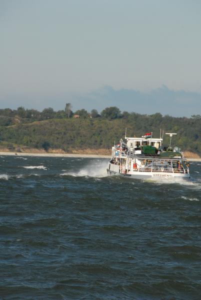 The entire day was marked by fierce winds and waves. This made sampling from the small boat very difficult, especially near the concrete bank where large waves hurled the boat against the wall. Air-lift sampling also proved difficult because the Argus could not be stabilized by anchor in the deep water (about 11 meters) near the Iron Gate II dam. The Argus's submerged pump also went out of order all day, thereby stopping the continuous flow of river water to the lab and making impossible many of the standard tests including Radon measurement. This was despite the extensive efforts of Argus technician Tomislav Andjic and JDS2 Core Team member Richard Niederreiter. Even so, the day ended with an optimistic mood.
