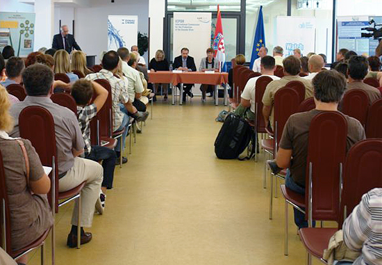 Samples of water, biota, and sediment were taken. Along with the international team, a national scientific team participated in the fish survey, led by Prof. Milorad Mrakovčić from the Faculty of Science, University of Zagreb. During the JDS 3 expedition in Croatia, the Meteorological and Hydrological Service also performed hydrological measurements. A public event and press conference, organized by the Ministry of Agriculture and Hrvatske vode, were held on 1 September at 10 a.m. in the Lav hotel in Vukovar. Introductory speeches were given by the Deputy Minister of Agriculture Snježana Španjol, General Manager of Hrvatske vode Ivica Plišić, and Executive Secretary of the International Commission for the Protection of the Danube River and expedition coordinator Ivan Zavadsky.
